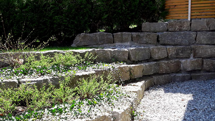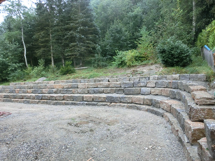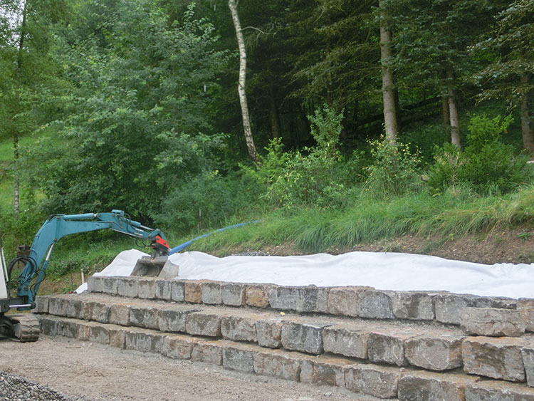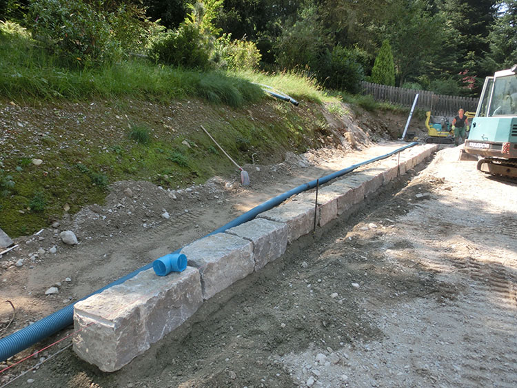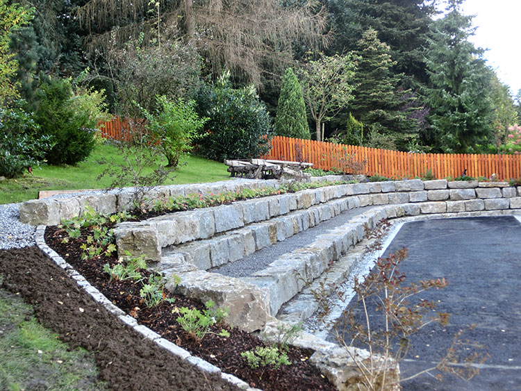Muschelkalk Mauer in den Hang verbaut