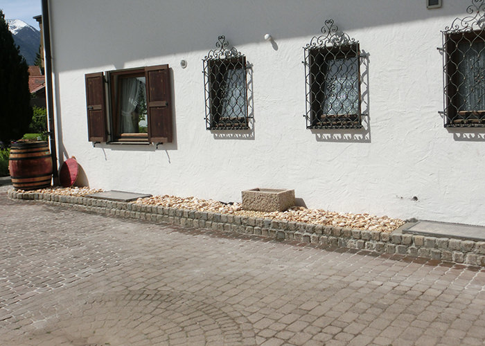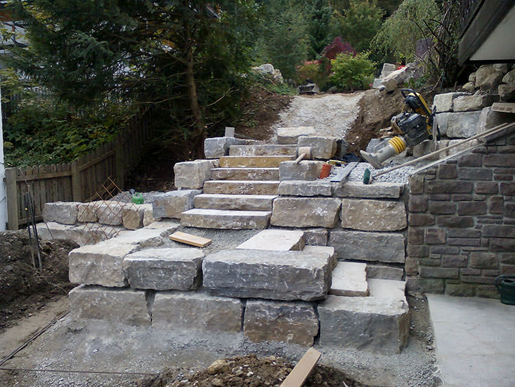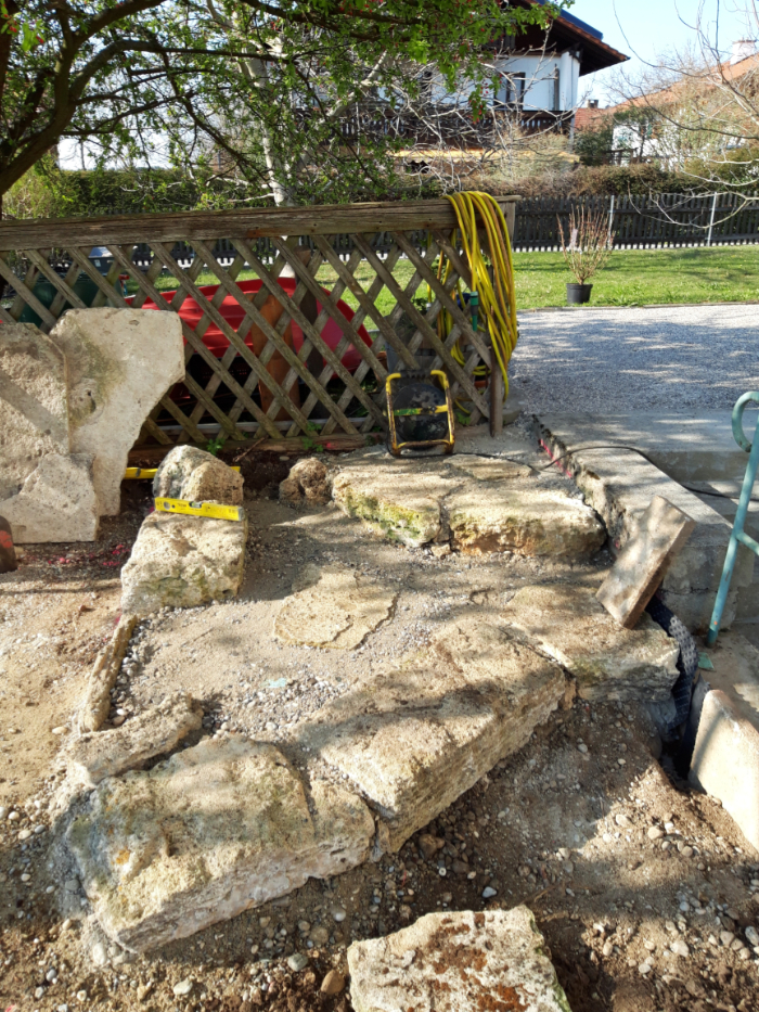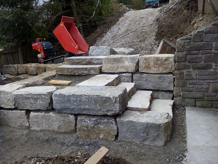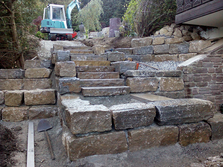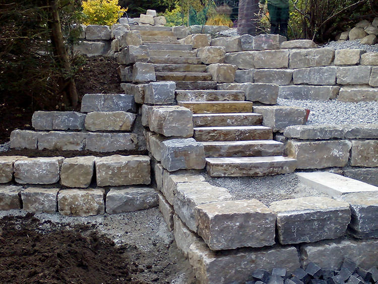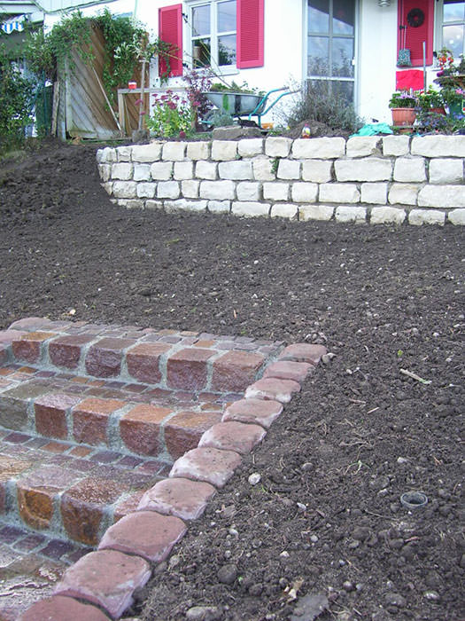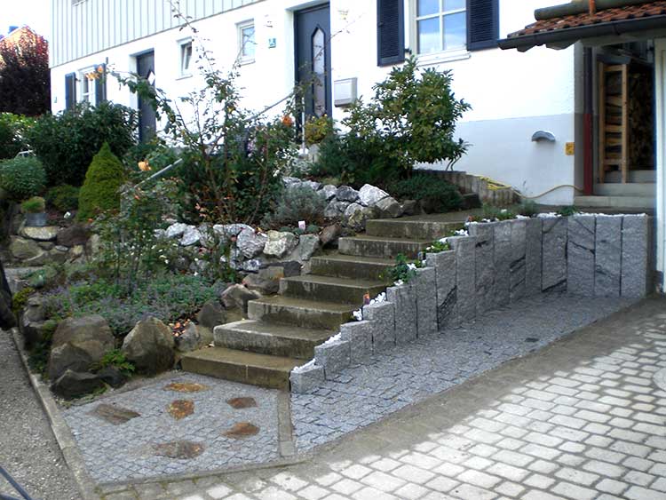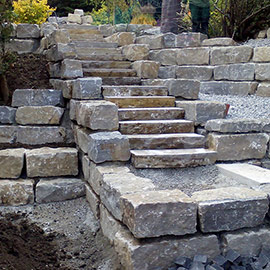 Porphyrtreppe und Jura Kalkmauer