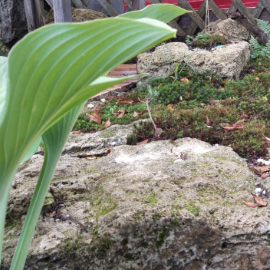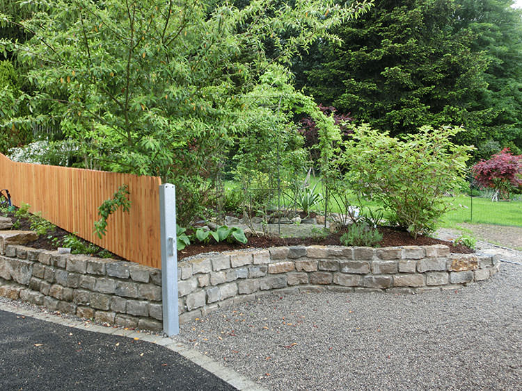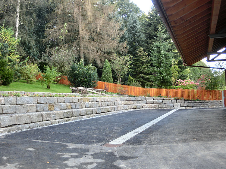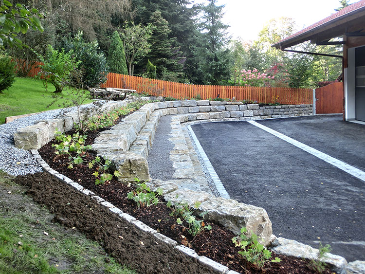 Muschelkalk Mauer an Garteneinfahrt